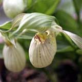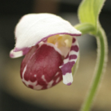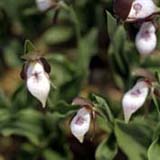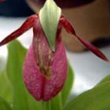 北米北東部、カナダに分布。 アツモリソウとクマガイソウの中間種にも思える。葉は2枚で花は2.5~3.5cmの筒状面長 の花を咲かます。人気の高い品種ですが、現在はフラスコ出し二年目のアルバが何十本かあり、 育種中です。