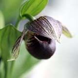 四川省から甘粛南部の標高2500~4000mとチベチクムやフラブムに比べ生息範囲はかなり狭くあまり、被らない。葉は3~4枚、花は一株に1輪つけます。花色には個体差があり、黒色の強い赤黒から明るい赤黒で唇弁は全体的に丸身がある。また、花には艶のあるタイプと艶無しのタイプが混在する。