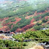 ハイマツの群落帯に色付くウラジロナナカマドの群やヒョウタンボクが秋の景色を引き立てます。