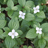 ゴゼンタチバナ(Chanaepericlymenun Canadense)は北海道~本州中部以北の亜高山~山地帯の針葉樹林などの樹下に生えるミズキ科ゴゼンタチバナ属の多年草。