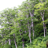 ブナ(Fagus crenata)落葉性広葉樹で樹高は大きなもので30mにもなる高木です。写真は2006年青森県白神山地で撮影したものです。群生地は北海道黒松内町がブナの群落地の北限とされております。